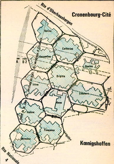 L’originalité de Hautepierre, c’est son dessin en « mailles » : des unités de quartier en forme d’hexagones, comme un nid d’abeilles.